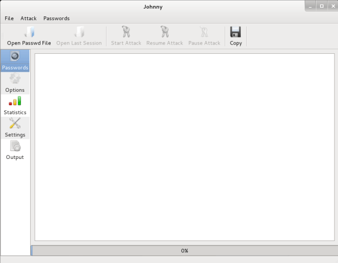 Menu File é usado para a abertura de sessões despejado-de hash ou o arquivo de senha criptografadae à mudança.